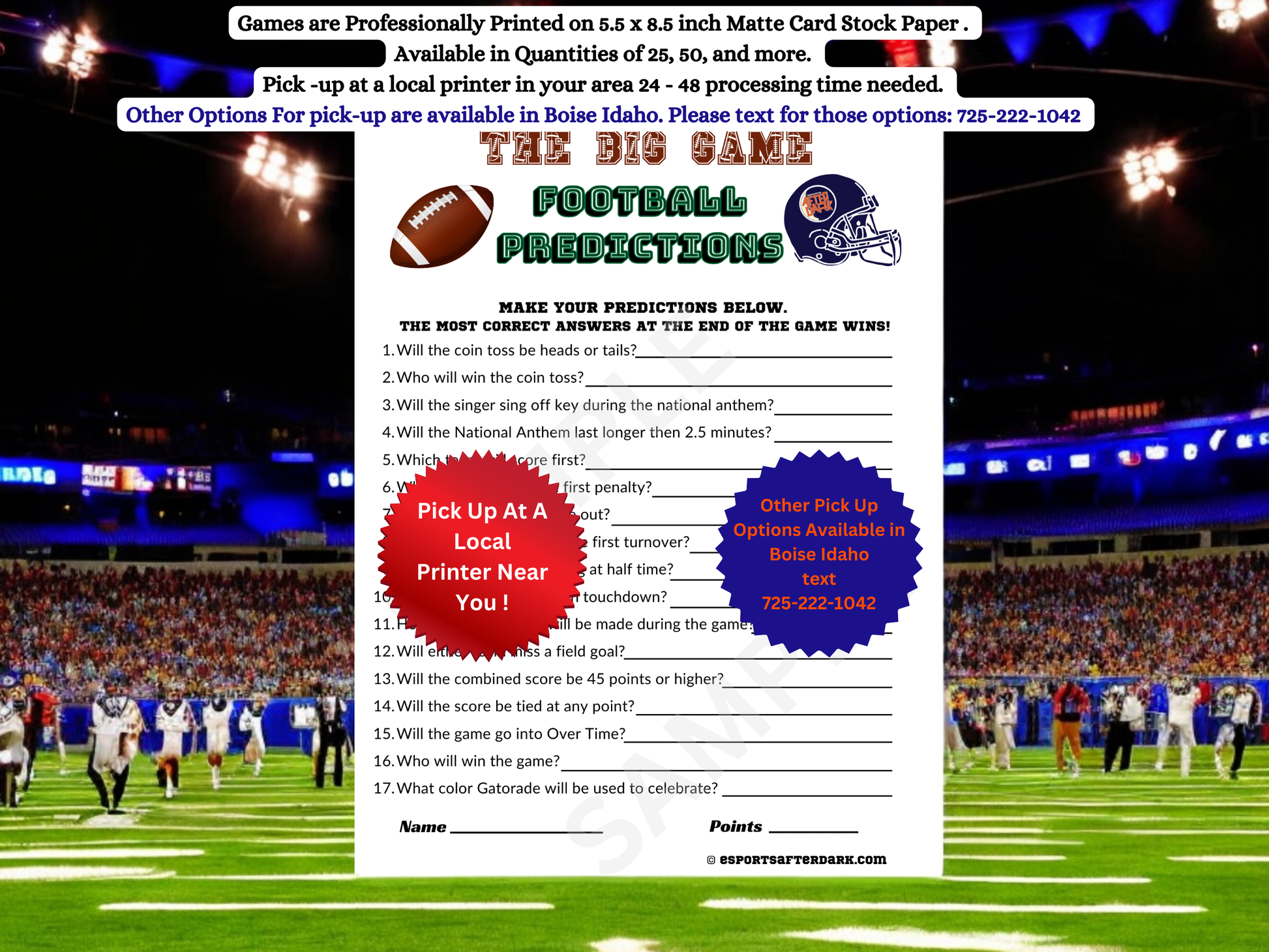 The Big Game Football Predictions - Local Pick Up Professionally Printed